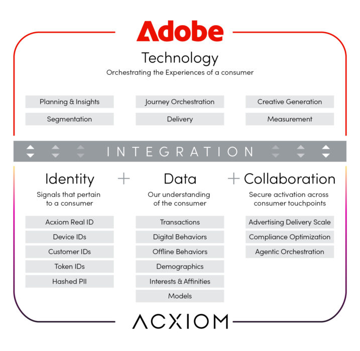 As an Adobe Platinum Technology Partner, Acxiom accelerates implementation through validated data, identity, and real-time personalization integrations with AEC. In partnership with Adobe, we address documented challenges related to customer understanding, acquisition, inconsistent experiences, and omnichannel activation. Our Adobe integrations are powered by the referential graph at the core of our identity solution, providing connections not evident in first-party data alone.