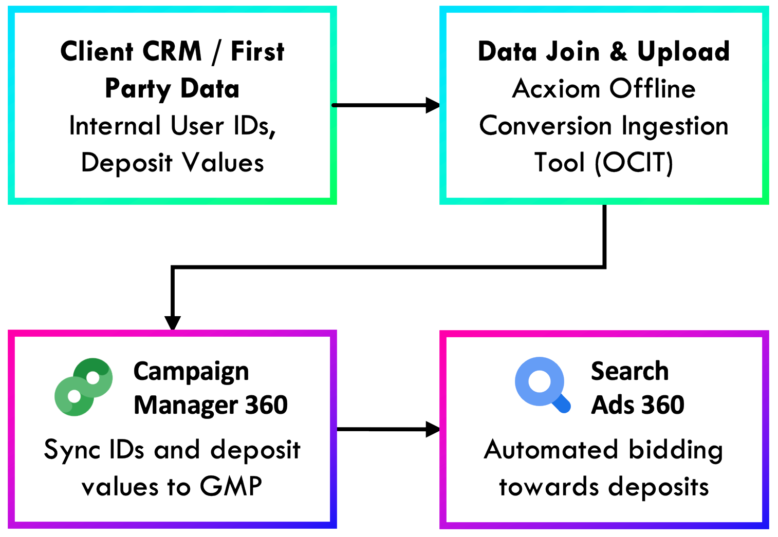 A top investment client optimized its media strategy using account registration signals in Google Marketing Platform (GMP). While this boosted account registrations, it didn’t drive their core KPI: brokerage account deposits. They needed an approach that better aligned with their true goal.